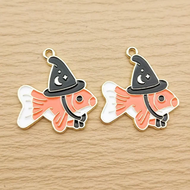 Transform your handmade jewelry into something playful and eye-catching with this delightful set of 10 cartoon fish charms. Crafted from durable zinc alloy and finished with a lustrous gold plating, these charms feature vibrant enamel detailing that instantly adds color and character to your designs. Whether you’re creating necklaces, bracelets, or earrings, these charming little fish will make your accessories stand out in a crowd.