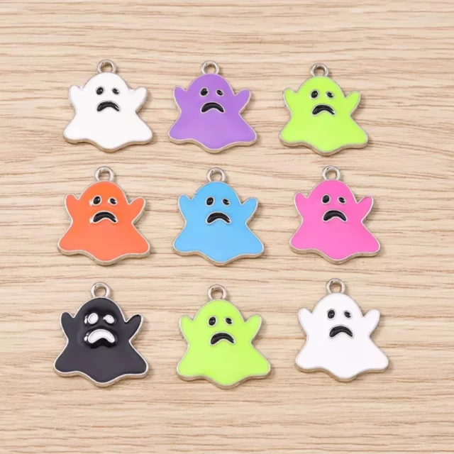 10pcs Colorful Enamel Halloween Ghost Charms for DIY Jewelry Making