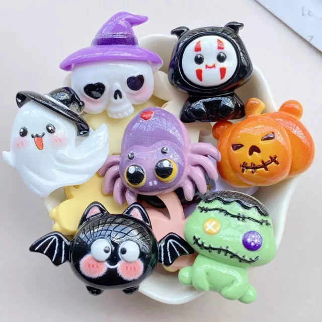 Each piece in this collection features a different Halloween-themed design, from charming ghosts to smiling pumpkins, playful bats, and more — all with a dash of kawaii-style cuteness that kids and adults alike will love. Made from high-quality resin, these charms are lightweight yet sturdy, ensuring your creations last through the spooky season and beyond.