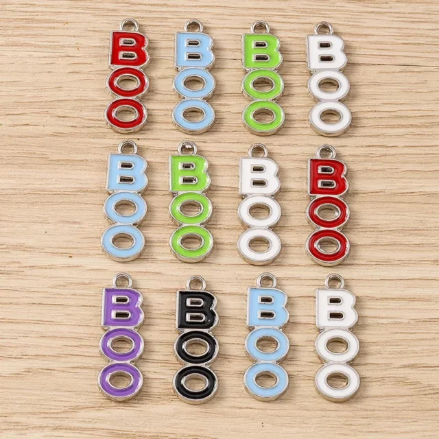 10pcs Enamel BOO Letter Charms Pendants for DIY Jewelry Making 8x24mm