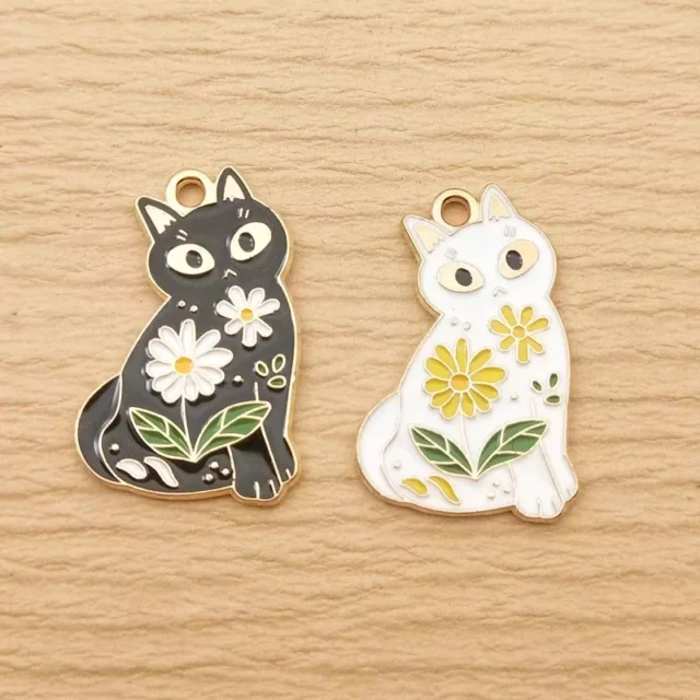 10pcs Enamel Flower Cat Charms for Jewelry Making – Cute Animal Pendants