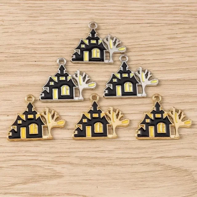 10pcs Halloween Castle Enamel Charms for DIY Jewelry & Crafts – 1×0.8 inch