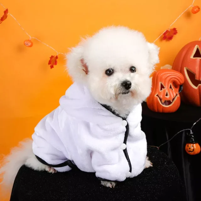 • Fun Halloween Ghost Design – Get your pet into the spooky spirit with an adorable white ghost hood and playful details.
