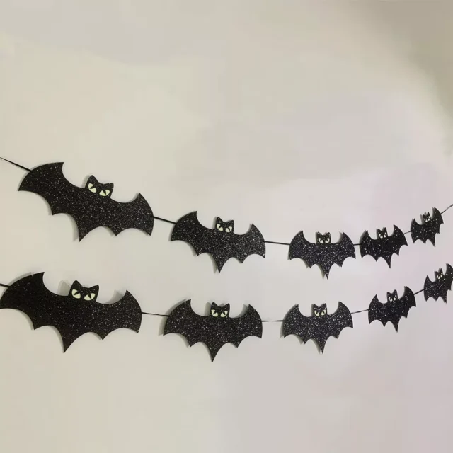 • Glow-in-the-dark eyes: This banner features bats with luminous eyes that shine brightly in the dark, making your Halloween decorations come to life at night.