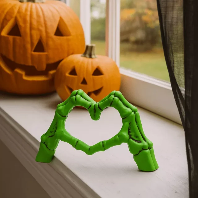 Celebrate the spirit of Halloween all year round with the Halloween Heart Hands Sculpture. Crafted from high-quality resin, this unique skeleton statue features two skeletal hands forming a heart shape – a playful yet eerie symbol of dark romance and festive fun. Standing at approximately 4.72 inches tall, it’s the perfect size to display on your desk, bookshelf, or party table without taking up too much space.
