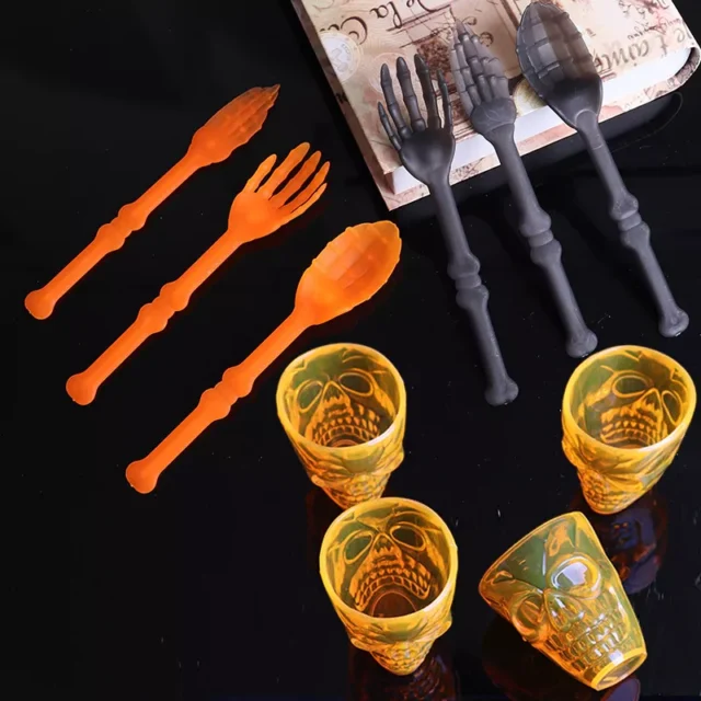 • Unique Halloween Design: The skull cup and themed cutlery add instant spooky vibes to your party table.