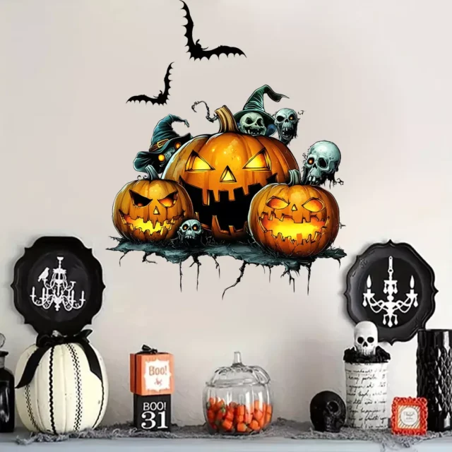 Halloween Pumpkin Skull Wall Stickers – Spooky Home Decor