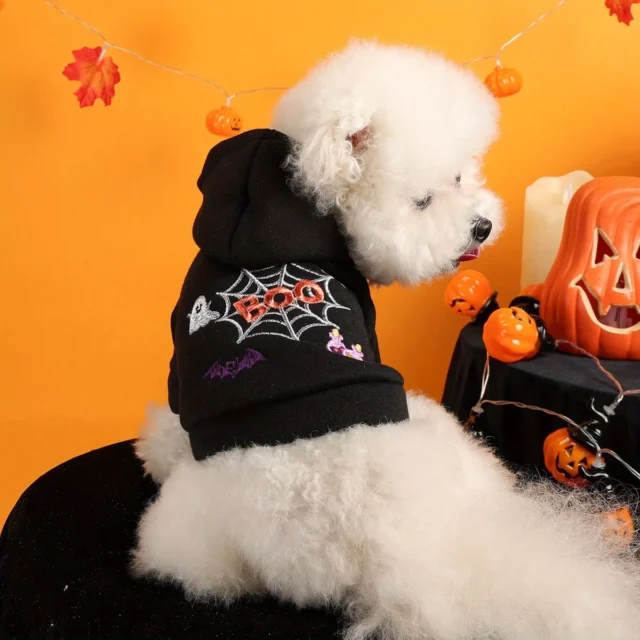 Give your pet the perfect Halloween look with this Spider Web Pet Hoodie. Designed with a fun embroidered pumpkin and spider web details, this adorable jacket brings festive charm to any dog or cat. Whether you’re heading out for a walk, attending a costume party, or just snapping cute seasonal photos, this hooded sweater is sure to make your pet the star of the show.