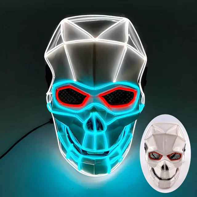 • Neon LED Lights: Brilliantly lit with neon LED lights, this mask gives off a haunting glow that’s perfect for nighttime festivities.