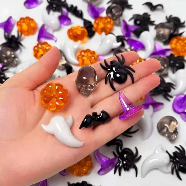 • Halloween-Inspired Design: Includes a variety of fun and spooky elements like mini pumpkins, skull heads, and witch hats.