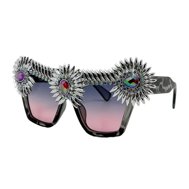 What makes these sunglasses truly special is their balance of retro flair and modern elegance. The dramatic frame shape exudes vintage glamour, while the gradient lenses and sun-inspired details add a luxurious, fashionable twist. They’re the ultimate choice for women who want to express themselves boldly and protect their eyes in style.