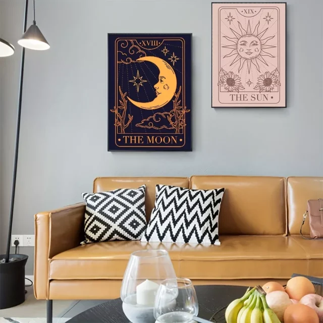 Retro Canvas Wall Art Sun Moon Tarot Poster for Home Decoration