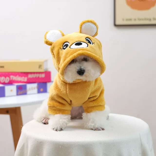Keep your beloved pet warm and irresistibly cute with this Yellow Bear Ear Pullover Sweater. Designed with a playful three-dimensional bear head and small rounded ears, this sweater transforms your dog or cat into an adorable bundle of joy while providing the comfort and warmth they need during chilly days. Its thickened fabric is soft to the touch, ensuring your pet stays snug indoors or outdoors.